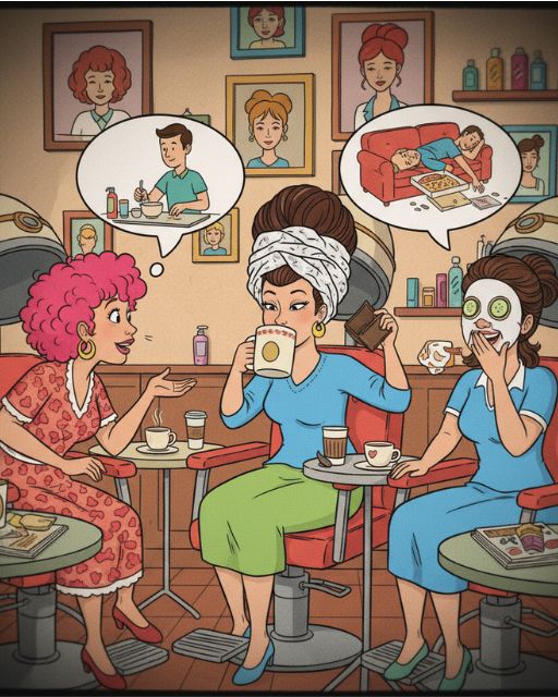 Three woman chatting about their husbands