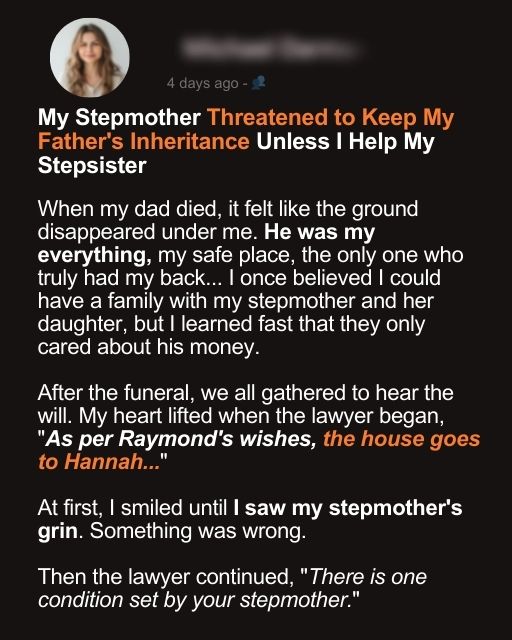My Stepmother Threatened to Keep My Father’s Inheritance Unless I Help My Stepsister