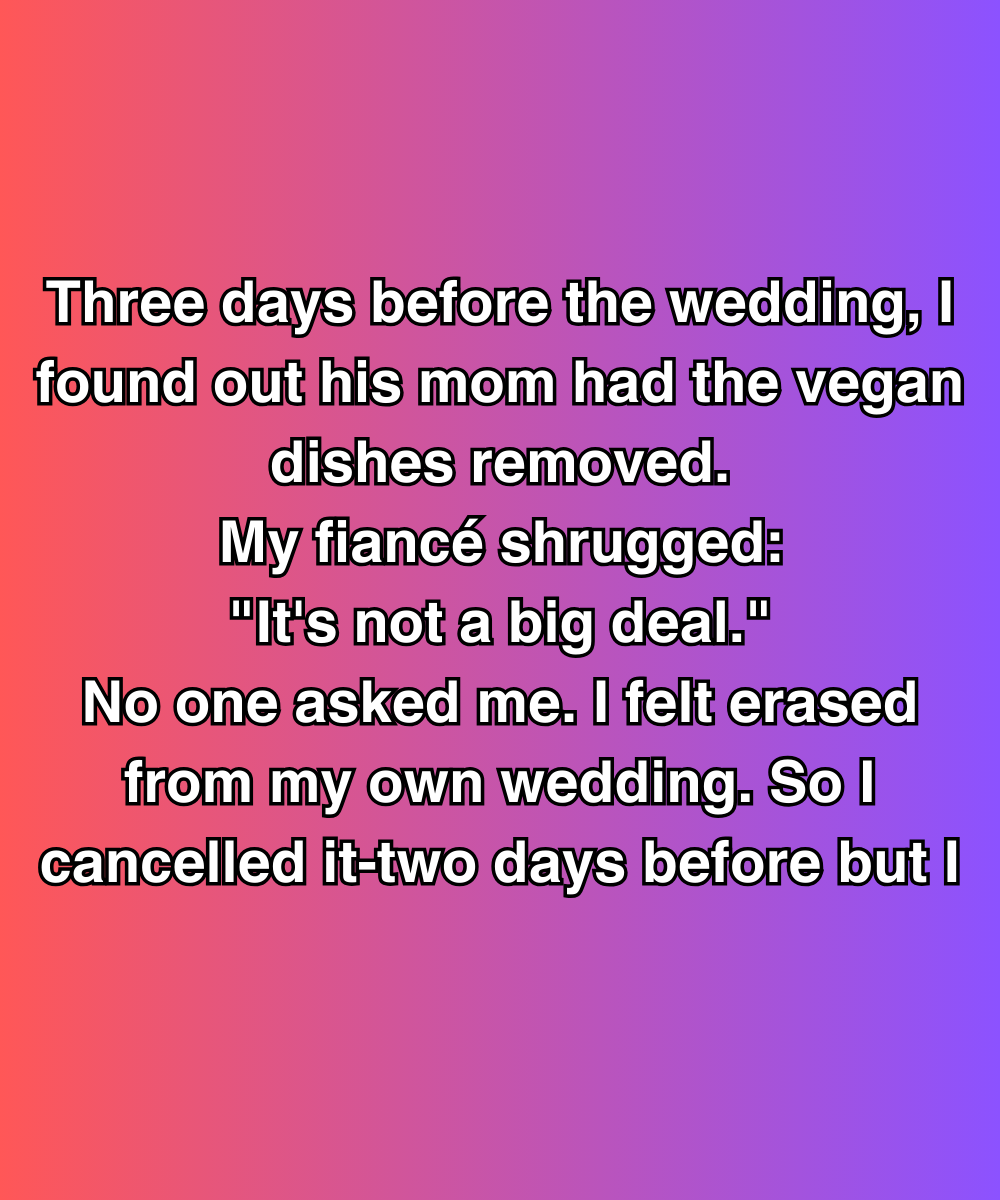 Three Days Before the Wedding, His Mom Removed the Vegan DishesโSo I Cancelled Everything