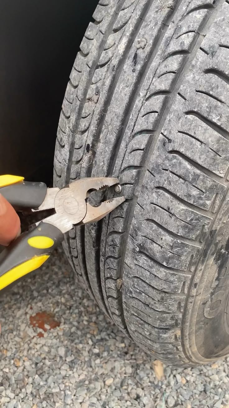 MY WIFE SAID HER CAR WAS ACTING WEIRDโSO I CHECKED AND FOUND A NAIL THE SIZE OF MY FINGER IN HER TIRE