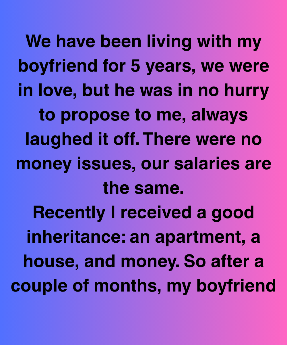 Recently I received a good inheritance: an apartment, a house, and money. So after a couple of months, my boyfriend started acting… different.