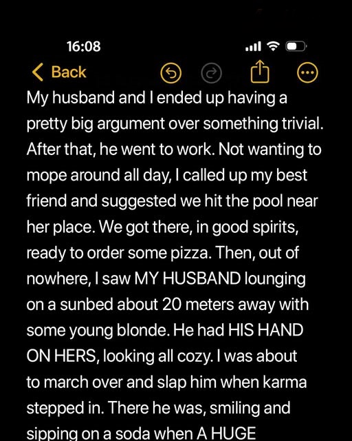 It was hard not to laugh myself. He looked ridiculous, flapping around like a panicked toddler, the blonde girl shrieking beside him as his soda soaked into her towel. But laughter aside, the betrayal burned like acid. He’d told me he was working a double shift at the office. Now here he was, shirtless, relaxed, holding another woman’s hand like I didn’t even exist.