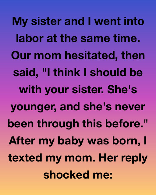 My sister and I went into labor at the same time. Our mom hesitated, then said, “I think I should be with your sister. She’s younger, and she’s never been through this before.” After my baby was born, I texted my mom. Her reply shocked me: โIโm sorry I missed it. But things didnโt go how I thought they would.โ