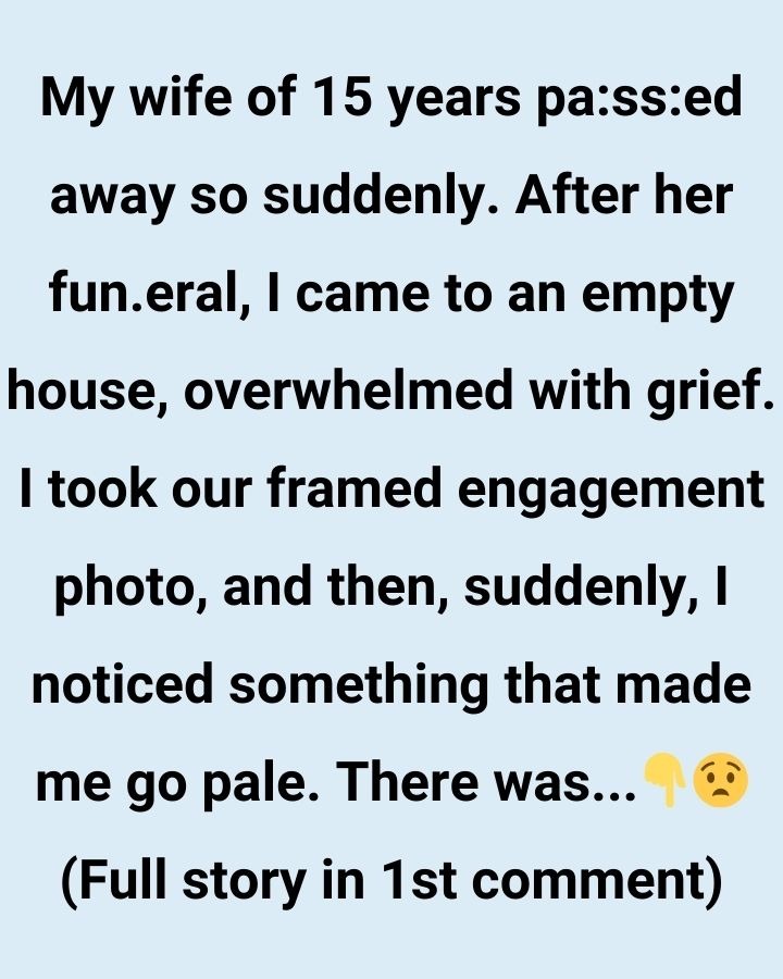 My wife of 15 years passed away so suddenly. After her funeral, I came to an empty house, overwhelmed with grief. I took our framed engagement photo, and then, suddenly, I noticed something that made me go pale. There was a folded letter tucked behind the frame, yellowed at the edges, like it had been there for years, waiting for someone to find it. My hands shook as I pulled it out and read the first line: ‘To my dearest Alden, if you’re reading this, it means I’m gone, and there’s something you need to know…’